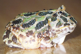 Ik dacht dat het onderscheid tussen kikkers en padden altijd af te leiden was aan de af-/aanwezigheid van 'wratten' op de huid, maar blijkbaar deugt dat niet, of zijn de bultjes van dit monster iets anders. |